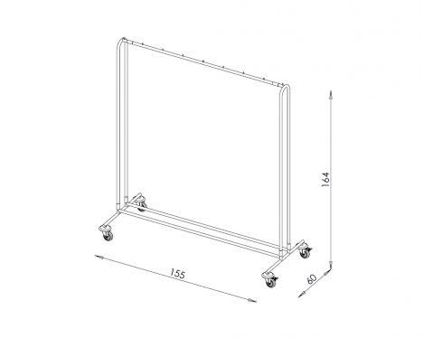 • š151 cm x h61 cm x v164 cm - zkl. rozměry hrazdy• konstrukce: ocel; povrchová úprava: chrom• 4x otočné kolo d=7,5 cm, 2x brzda; plast. nárazníky• celková nosnost: 50 kg