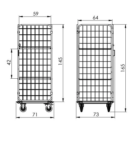 š 71 cm x h 73 cm x v 165 cm - rozměry vozíku