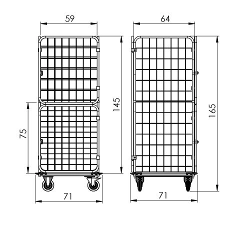 • š71 cm x h71 cm x v165 cm - rozměry vozíku