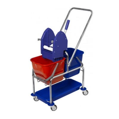 V ceně vozíku: konstrukce s vodítkem, 2xkbelík 17 l, ždímač, vanička 3x6 l