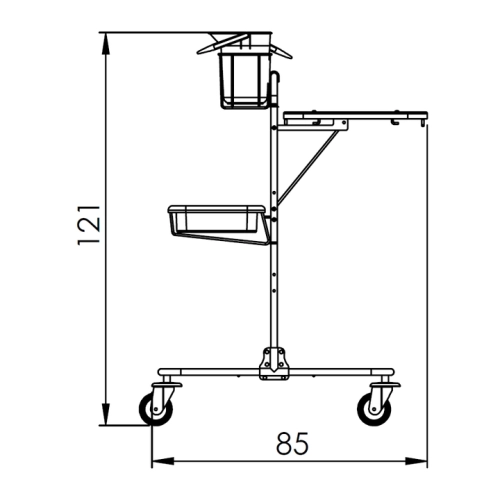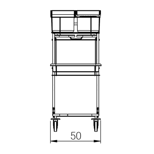 • š85 cm x h50 cm x v121 cm - rozměry vozíku; 2x držák vaku 80l