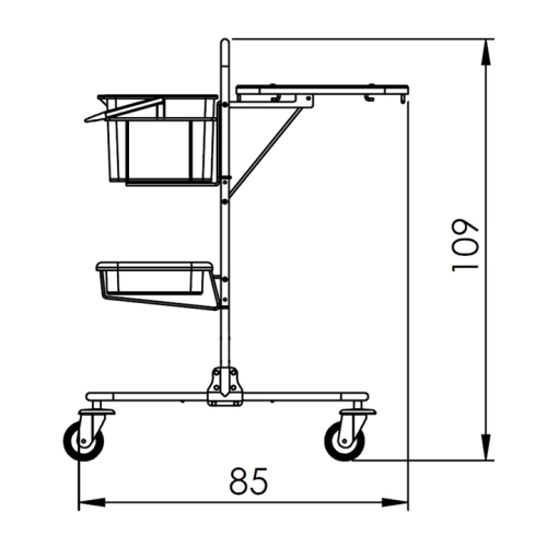 • š85 cm x h50 cm x v109 cm - rozměry vozíku; 2x držák vaku 80l