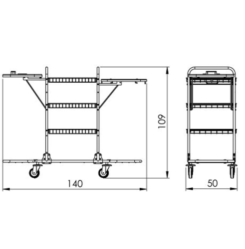 • š135 cm x h50 cm x v109 cm - rozměry vozíku; sklopné držáky vaku: 1x 120l, 2x 80l