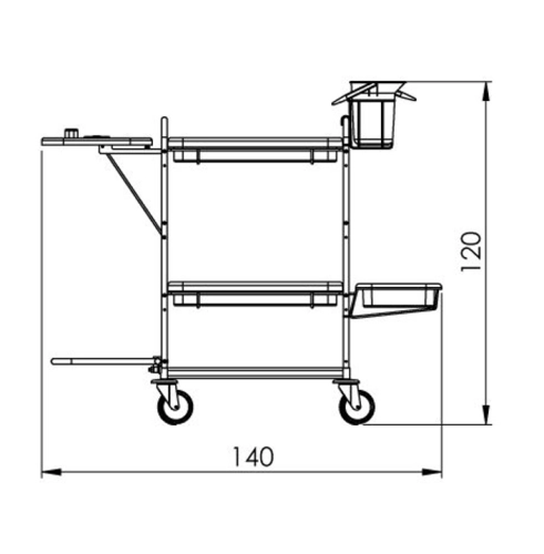 • š140 cm x h54 cm x v120 cm - rozměry vozíku; 1x sklopný držák vaku 120l