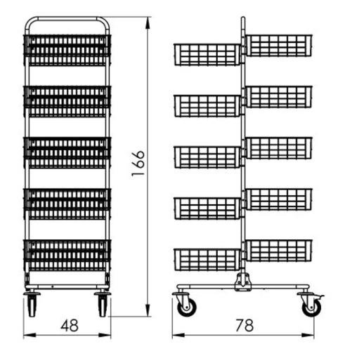 • š78 cm x h48 cm x v166 cm - rozměry vozíku