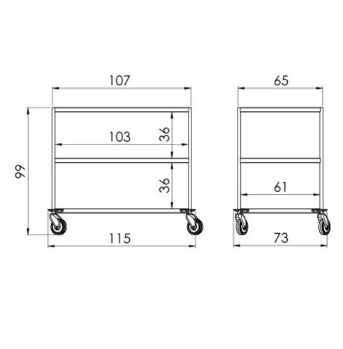 • š115 cm x h73 cm x v99 cm - zkl. rozměry vozíku