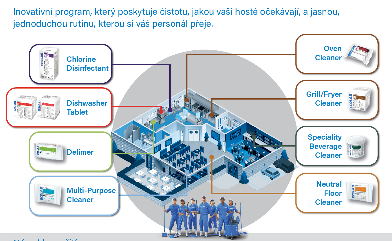 čistotu pro vaše hosty a jasnou, jednoduchou rutinu pro váš personál.