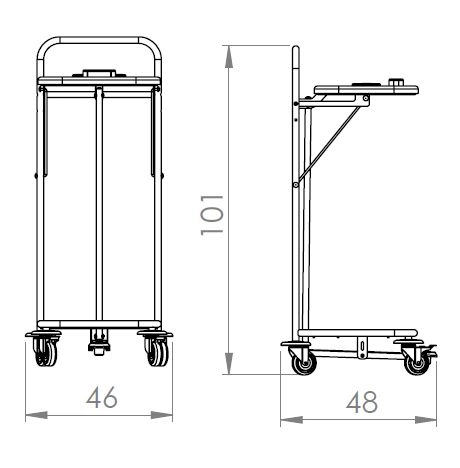 š46 cm x h48 cm x v101 cm - rozměry vozíku