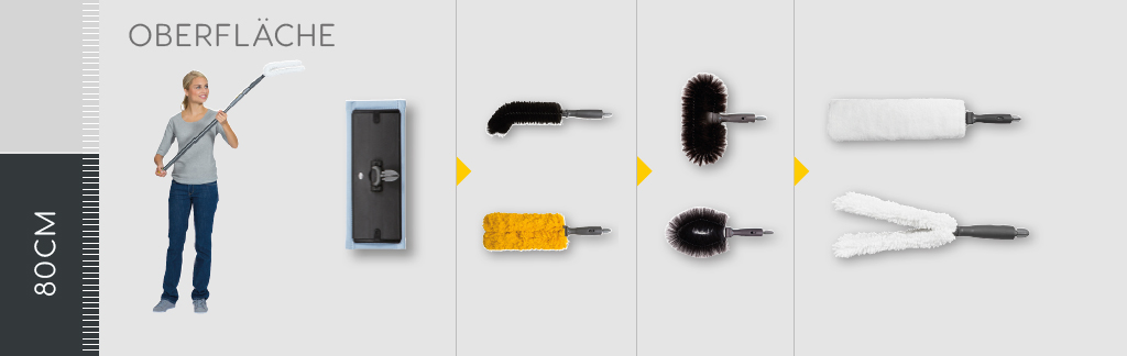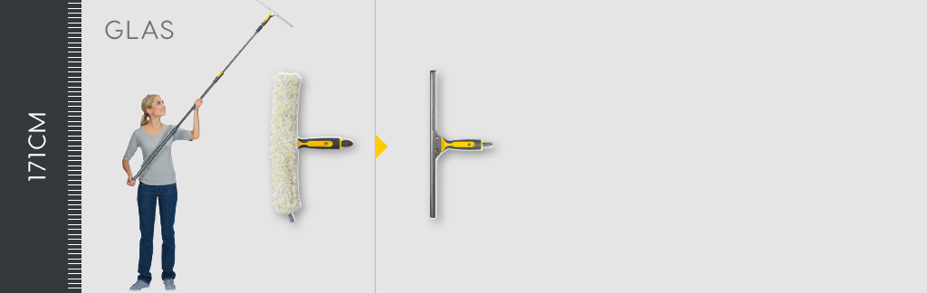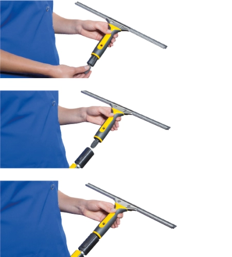 Teleskopická násada Scandic X zvládne všechny úkoly s lehkostí a příkladnou ergonomií. Čističi mohou nastavit rukojeť v závislosti na požadované pracovní výšce (80 cm délka pro čištění zrcadel až 171 cm pro práci nahoře) jedním kliknutím - bez potíží s otáčením. Připojená zařízení kloužou po podlaze, odstraňují prach z povrchů nebo bez námahy čistí stropy.