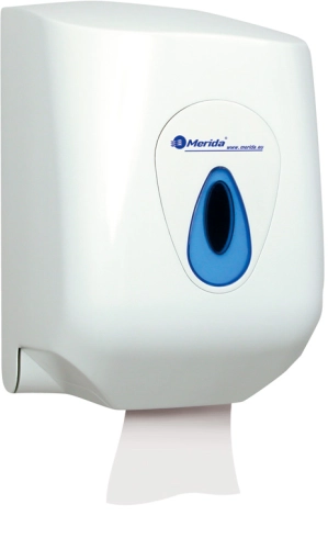 vybavený průhledným plastovým průzorem umožňujícím kontrolu množství ručníků v zásobníku, v barvě modré